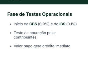 A Enacte não atua por etapas isoladas: conduz a empresa ao longo de todo o calendário da Reforma Tributária, da fase de testes à implementação plena, garantindo continuidade técnica, coerência operacional e segurança decisória em cada momento da transição.