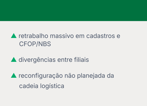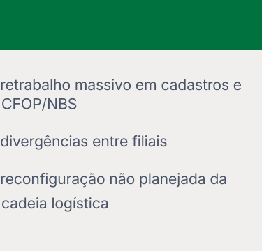 Esse conjunto de mudanças exige adequações simultâneas em sistemas, dados mestres, fluxos fiscais, parâmetros de ERP, contratos, precificação e governança.
