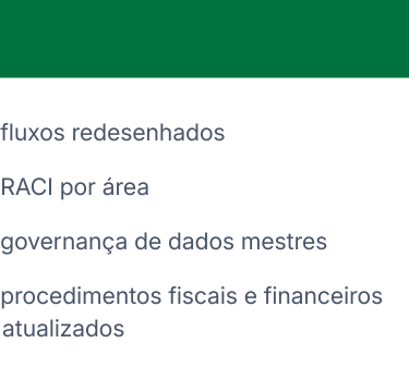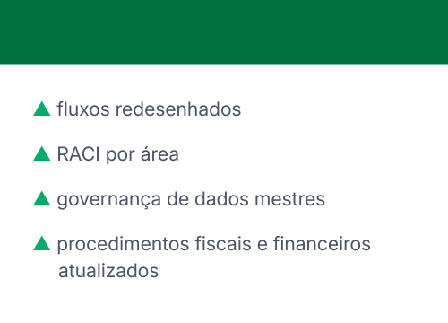 ▲ governança de dados mestres, RACI operacional e rotinas revisadas