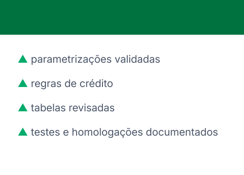 ▲ especificação e validação de parametrizações de ERP (em parceria com integradores)